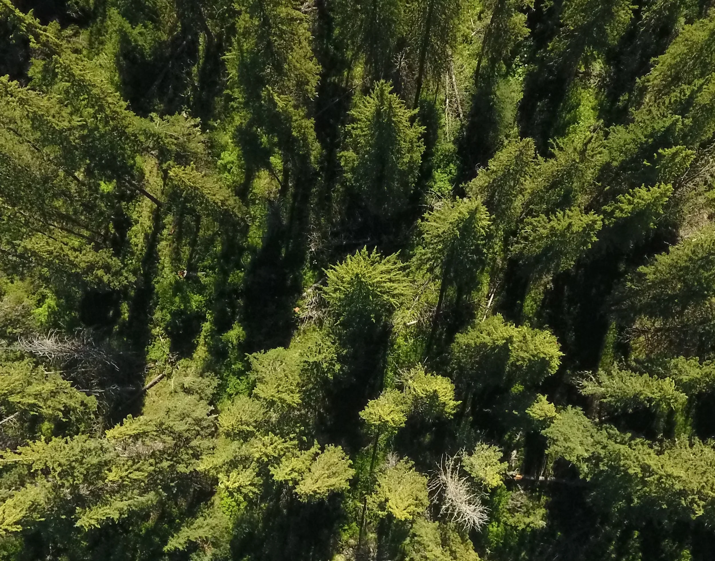 Using a Structure-from-Motion algorithm, I reconstructed from the photographs a 3D point cloud of the trees I flew over